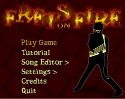 Frets on Fire é um jogo divertido que pode ser usado para testar os seus conhecimentos musicais e agilidade. O foco do jogo é tocar guitarra com um teclado de forma tão precisa quanto você puder. Ele é muito parecido com o Guitar Hero. Este jogo pode ser executado diretamente a partir de um dispositivo portátil e exige 52.1MB de espaço livre em disco.